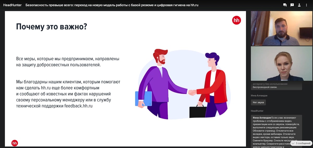 Артур Воронов, кандидат технических наук, доцент кафедры автоматизации и компьютерно-интегрированных технологий ЛГУ им. В. Даля, принял участие в вебинаре «Безопасность превыше всего: переход на новую модель работы с базой резюме и цифровая гигиена на hh.ru» в роли слушателя.