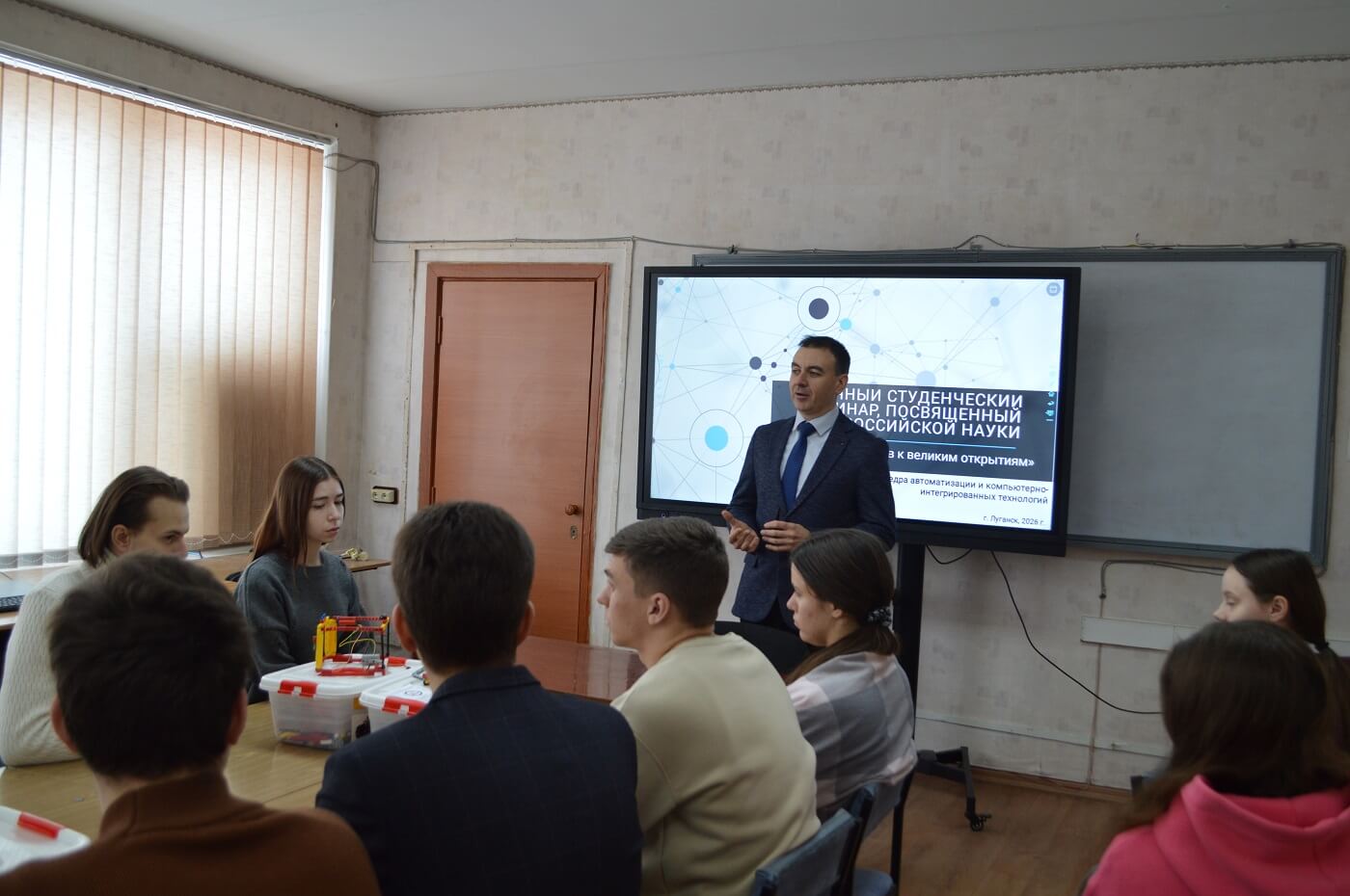На кафедре автоматизации и компьютерно‑интегрированных технологий Института компьютерных систем и информационных технологий ЛГУ им. В. Даля прошёл кафедральный научный семинар, посвящённый Дню российской науки (8 февраля) «От первых опытов к великим открытиям».